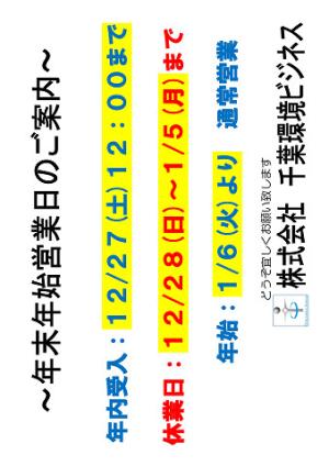 | [304] 年末年始営業日のおしらせ2025-2026 (2025/12/12) | |